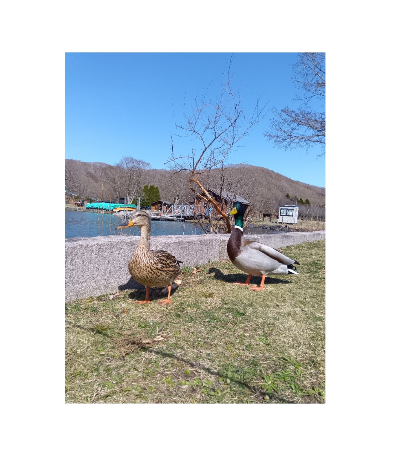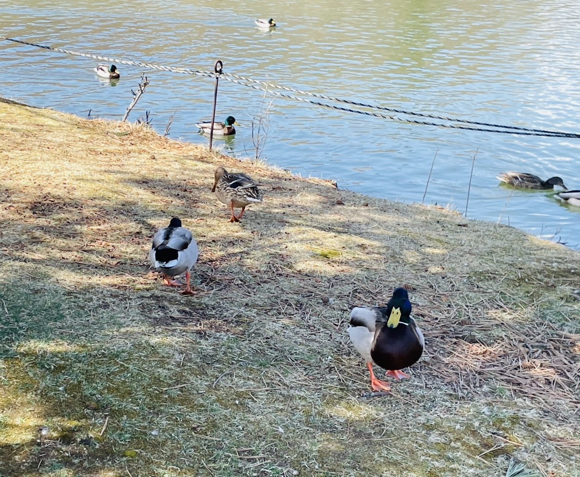 カモは、芝生と池を行ったり来たり🦆🦆🦆時には来園者の方のそばに行き、一緒に歩いたりしてます❣️